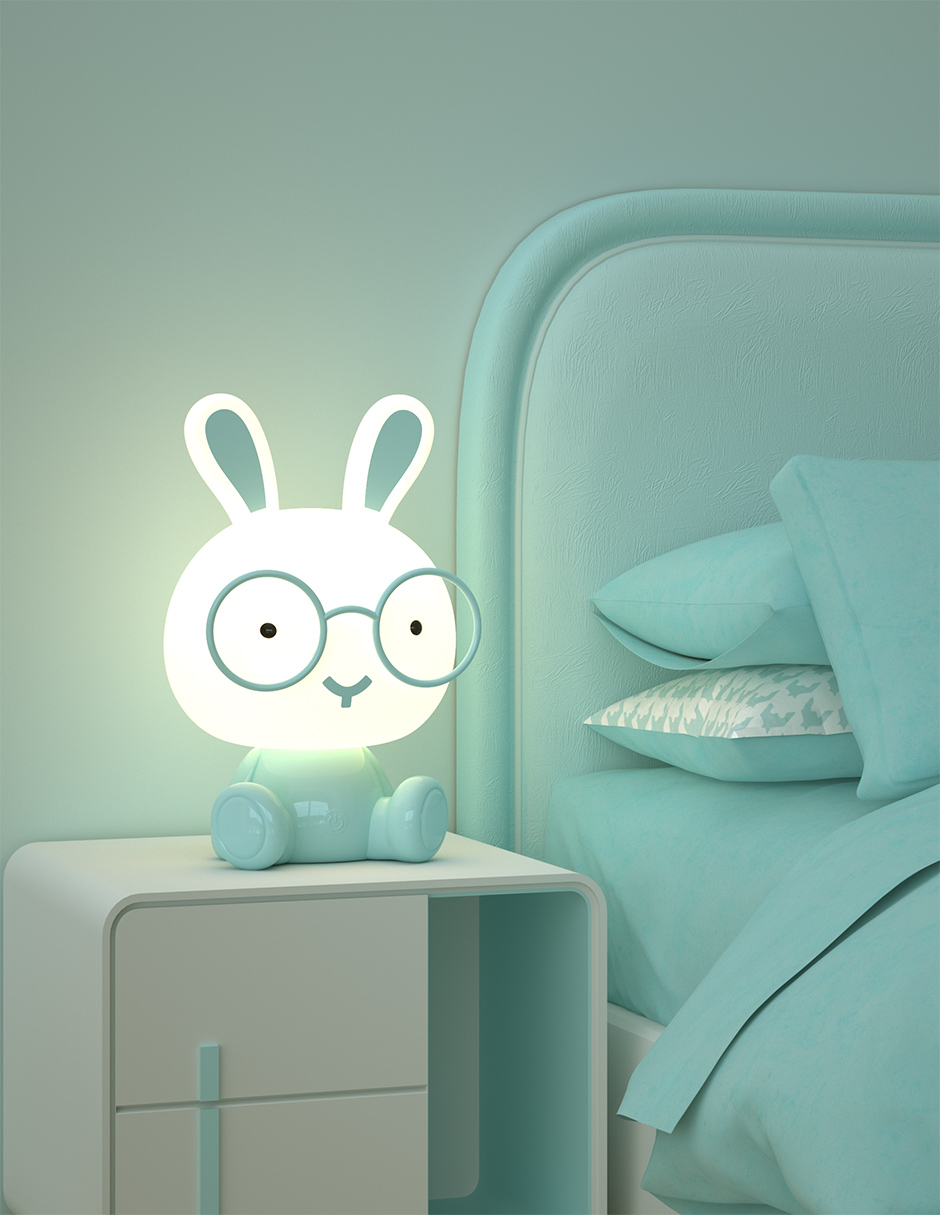 Bunny night lamp,8 level touch dimmer RGB color light and white light,inner recharging Li-battery,with USB recharge cable.