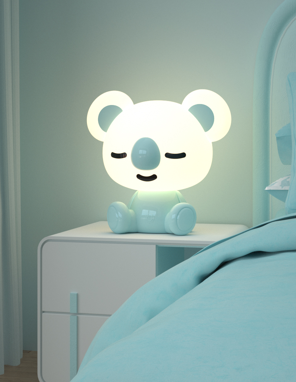 Koala night lamp,8 level touch dimmer RGB color light and white light,inner recharging Li-battery,with USB recharge cable.