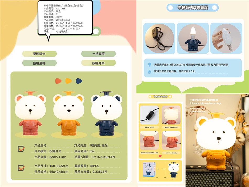 The main products are toys, children‘s lights, alarm clocks, photo frames and other supplies; Product varieties and styles continue to develop and update.