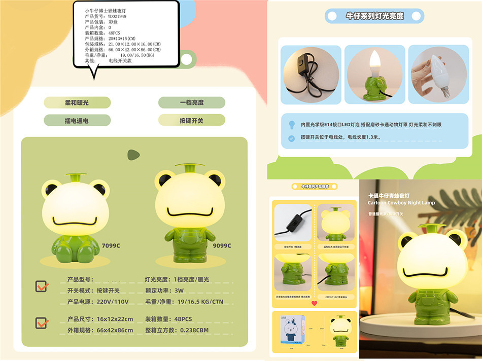 The main products are toys, children‘s lights, alarm clocks, photo frames and other supplies; Product varieties and styles continue to develop and update.